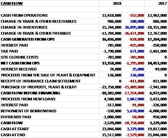 Before movements in working capital, cash profits declined by £552K to £13.4M. There was a cash inflow from working capital but this was slightly less than last time and after interest payments increased by £435K, and the site closure costs of £703K were slightly offset by a £671K reduction in tax payments, the net cash from operations was £13.2M, a decline of £1.3M year on year. The group spent £23.8M on capex to give a cash outflow of £10.4M before financing. They took in £4.5M of new loans and spent £1M on dividends which meant that there was a cash outflow of £7.5M in the year and a cash level of £15.5M at the year-end.