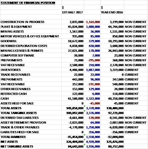 During the period, the group produced 7,027 tonnes of copper, an increase of 2% and they are on course to achieve the 2017 guidance of 13,000 to 14,000 tonnes.. They sold 6,870 tonnes, which represents an increase of 8%. The average copper price achieved was $5,659 per tonne compared to $4,903 in the first half of last year and was the driver of the improved performance.
