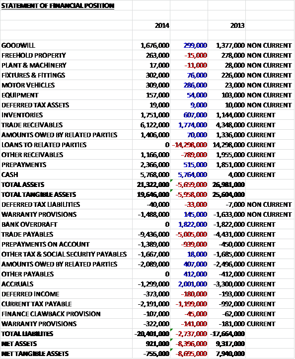 When compared to the end point of last year, total assets declined by £5.7M driven by a £14.3M fall in loans to related parties, which were waived when the company listed (the related parties were also controlled by the owners of Entu and included Sale Rugby club!– I am not sure I like that), partially offset by a £5.8M increase in cash and a £1.8M growth in trade receivables. Conversely liabilities increased during the year as a £5M growth in trade payables, a £1.2M growth in current tax payable and a £939K increase in prepayments on account was partially offset by a £2M fall in accruals and a £1.8M decline in bank overdrafts. The end result is an £8.7M negative swing in net tangible assets to a negative £755K which doesn’t look that great to me, despite the group stating they have a strong balance sheet (always a red flag). It is also worth noting that there are £8.9M worth of operating lease commitments off the balance sheet.