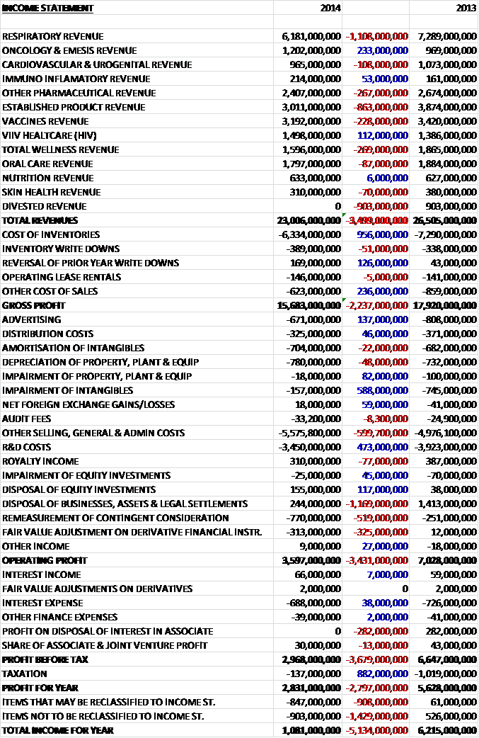 GlaxoSmithKline has now released its final results for the year ending 2014.