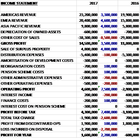 Revenues increased when compared to last year due to a £4.6M growth in EMEA revenue, a £4M increase in Asia Pacific revenue and a £3.3M growth in Americas revenue. Cost of sales increased by £8.5M to give a gross profit £3.5M ahead of 2016. The group made £4.8M on the sale of a surplus property but other admin expenses increased by £600K and other operating expenses were up £200K to give an operating profit £7.5M higher. Interest income declined somewhat and the total tax charge increased by £2.6M to give a continuing profit of £2.4M, a growth of £4.8M year on year.