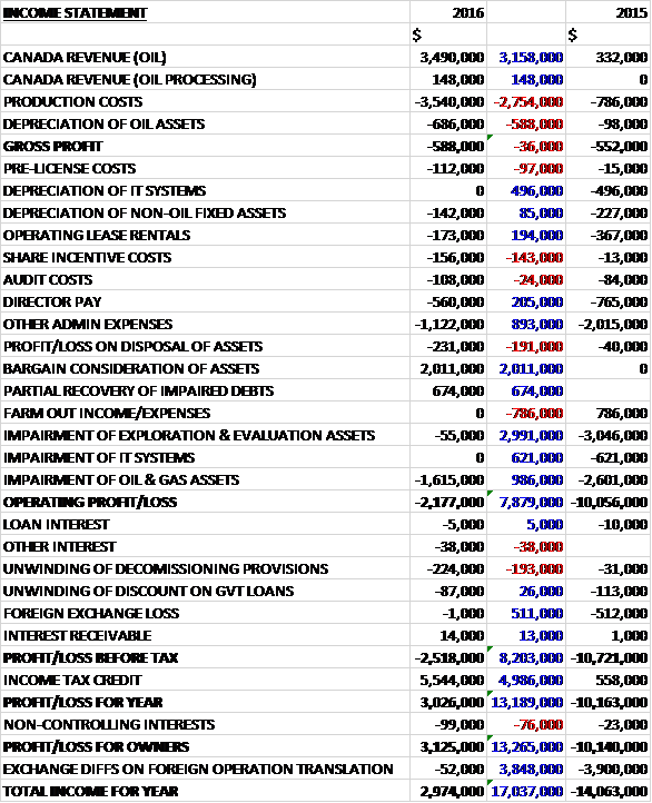 Northern Petroleum have now released their final results for the year ended 2016.