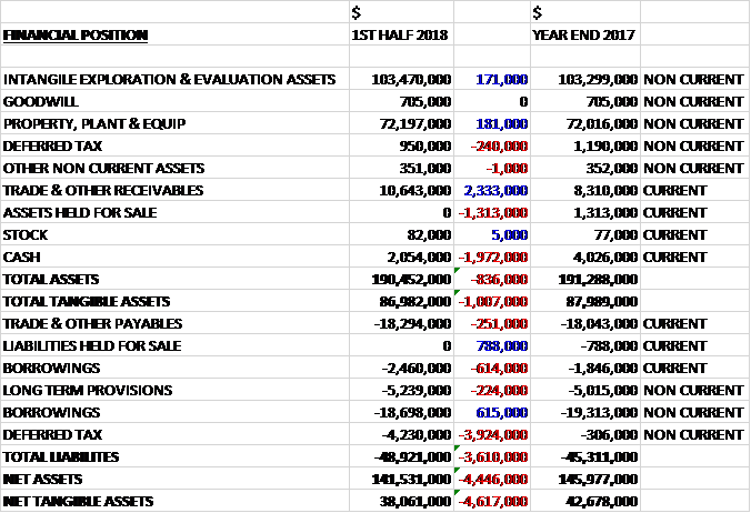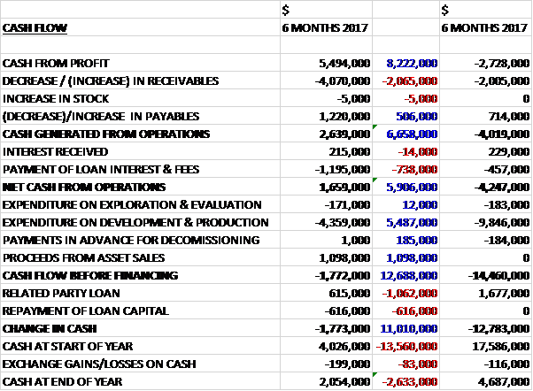 Revenues increased by $16.3M when compared to the first half of last year. Depreciation was up $2M and well operating costs increased by $7.8M to give a gross profit $6.5M higher. Wages increased by $165K and other admin expenses increased by $276K which meant that there was a $5.9M swing to an operating profit. There was a $1.1M negative swing to forex losses and loan fees increased substantially, up $784K which meant that there was still a pre-tax loss, although this showed an improvement of $4.2M. There was a considerable deferred tax charge, however, which meant that the loss for the period was $4.6M, an improvement of just $146K year on year.