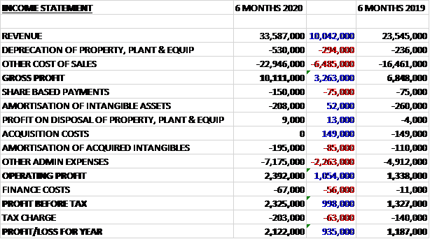 Revenues declined when compared to the first half of last year as a £1.1M growth in UK revenue, a £1.1M increase in Korean revenue and a £174K increase in US revenue was more than offset by a £4.4M decline in ROW revenue. There were £395K of acquisition costs but other operating costs were down £536K to give an operating profit £1.9M lower. There was a slightly lower profit from an associate but tax charges declined by £351K to give a profit for the period of just £26K, a decline of £1.6M year on year.
