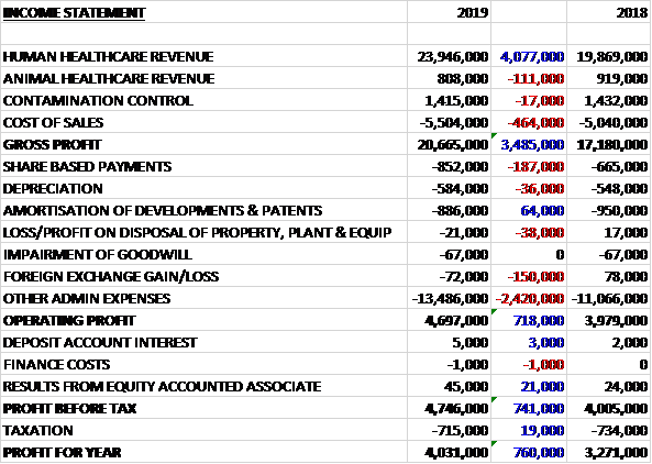 Management service fees increased by £235K but franchise sales were down £132K and other revenue declined by £148K. Assisted acquisitions support increased by £29K but other cost of sales fell slightly to give a gross profit £59K lower. Depreciation increased by £29K but other admin expenses fell by £183K which meant the operating profit was £95K higher. Bank interest was slightly lower, as were tax charges so the profit for the period was £1.6M, a growth of £120K year on year.