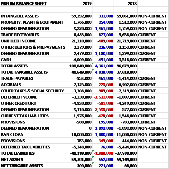 When compared to the end point of last year, total assets increased by just £533K driven by a £4.1M growth in inventories and a £2.3M increase in cash, partially offset by a £2.4M reduction in the amount due under long term contracts, a £1.3M fall in prepayments and accrued income and an £845K decline in customer relationships. Total liabilities also increased during the year as a £2.4M decline in borrowings and an £841K decrease in deferred tax liabilities was more than offset by a £5.6M increase in payments on account. The end result was a net tangible asset level of £31.4M, a growth of £1.4M year on year.