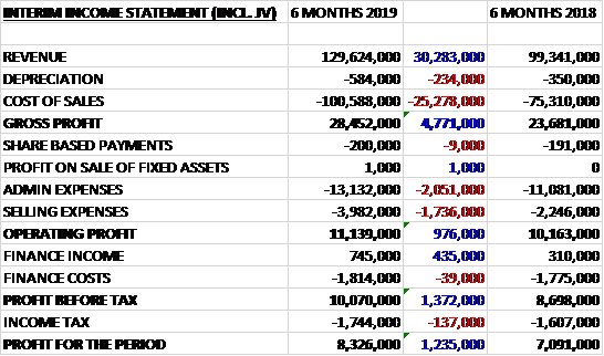 Going forward the group still have work to do in order to achieve their original target of exceeding £50M of total profit before tax for 2019 and Brexit brings a certain amount of unpredictability.