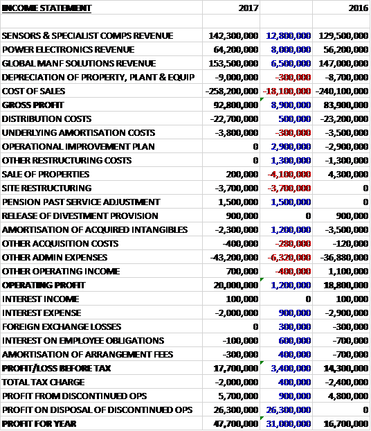 TT Electronics has now released their final results for the year ended 2017.