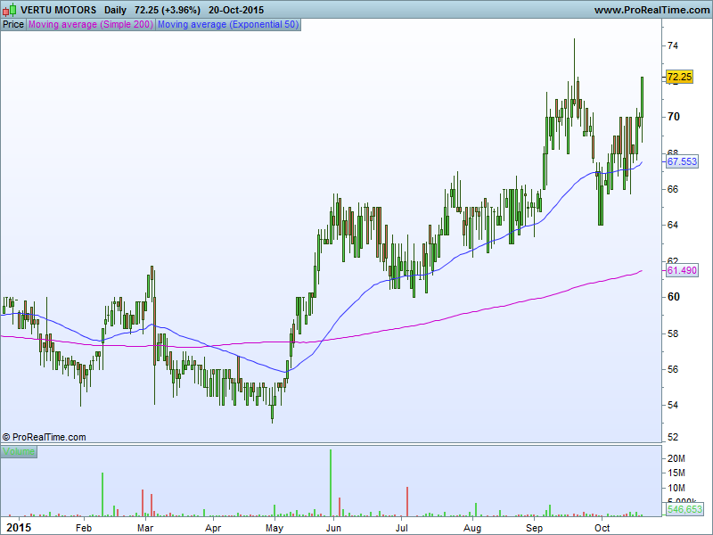 The collaboration with Haymarket does sound interesting and the other peripheral businesses seem to be contributing more to the group. After the period end, a net £17.7M has been spent on acquisitions and capex so the cash levels could be coming under threat but despite falling volumes, profits in the important month of September are head of last year which means trading for the full year is expected to be ahead of analyst predictions which is always good to see. The VW scandal doesn’t seem to have hit sales yet but one would expect it will at some point, but this may be mitigated by increased work in the aftersales division. At 1.8% the dividend yield is not much to write home about but I am sorely tempted to buy in here.
